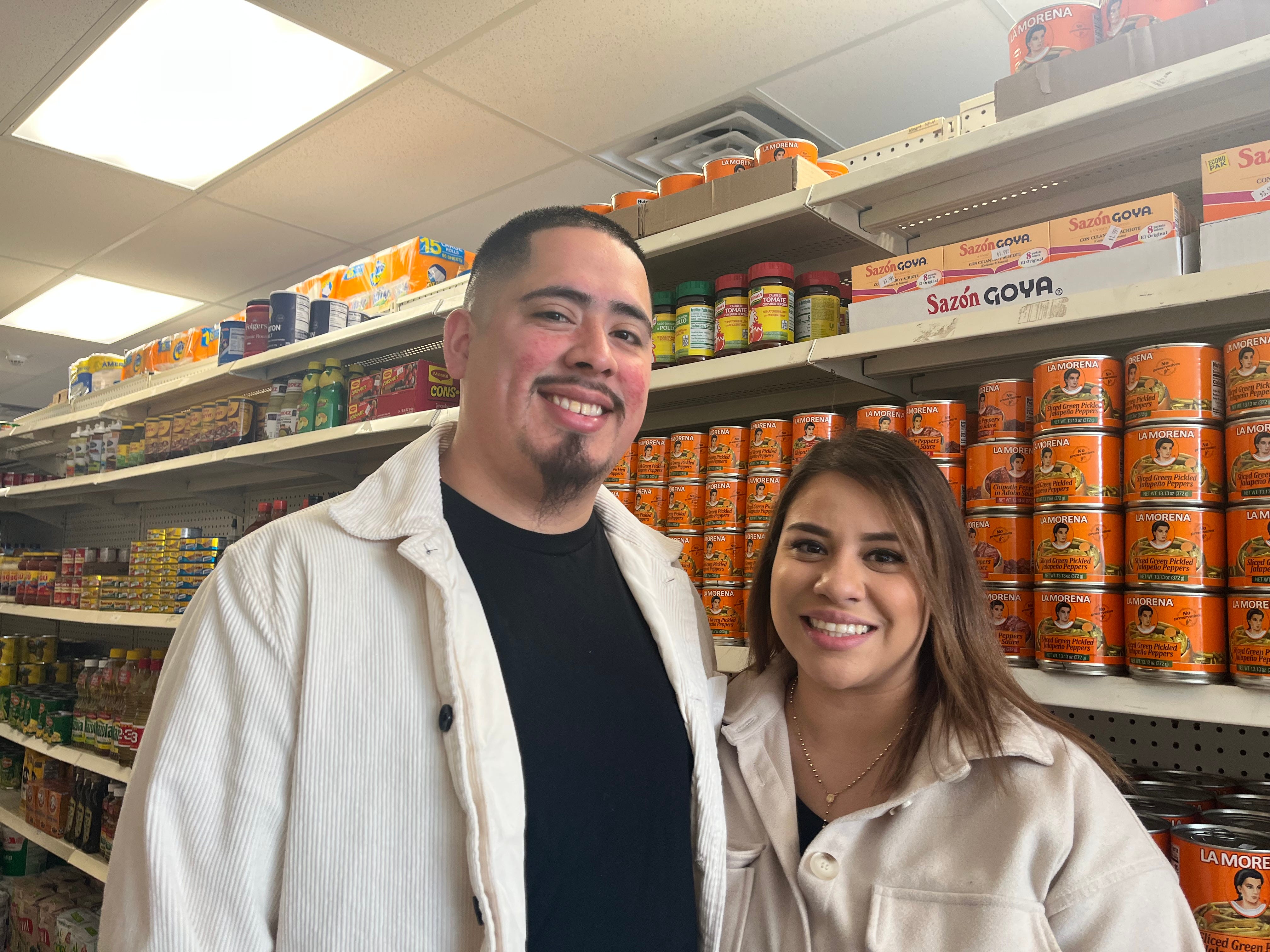 Kevin and Yesenia Salto Mendez inside their grocery store, Hasta Luego Mexican Mini Market in Broadview on Thursday. The store will officially open on Saturday.